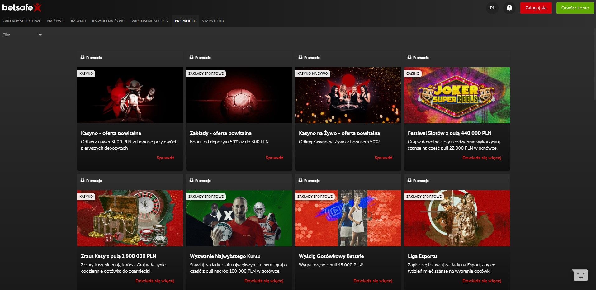 Rejestrację potwierdza się przez kliknięcie zielonego przycisku „Otwórz konto”. Następnie pozostaje już tylko Betsafe Casino logowanie, czyli kliknięcie czerwonego przycisku „Zaloguj się” zlokalizowanego w górnym menu. W tym momencie można już dokonać wpłaty, rozpocząć grę i cieszyć się z bonusów. Pozostałych formalności (np. weryfikacja tożsamości) można dopełnić później.
