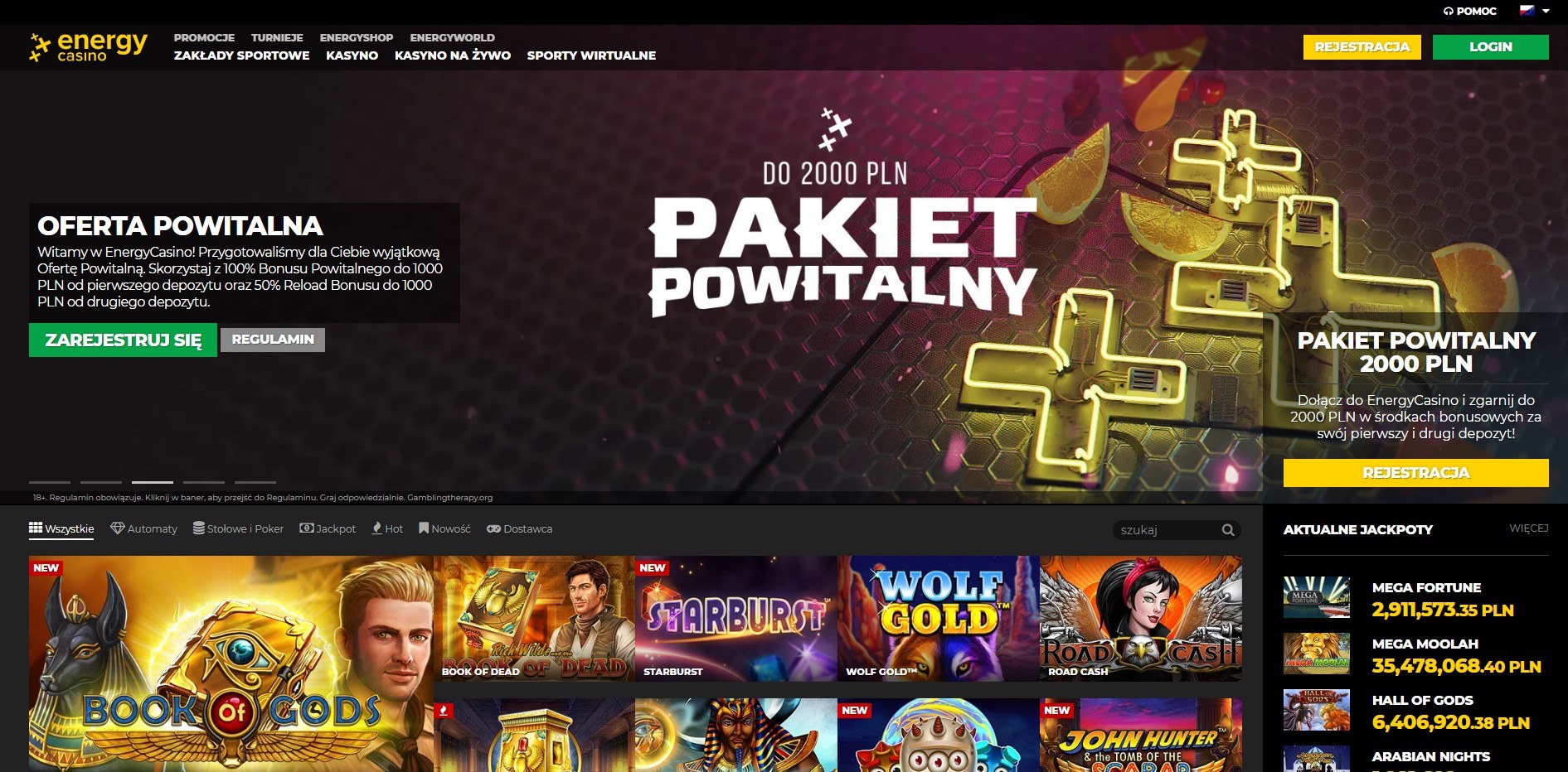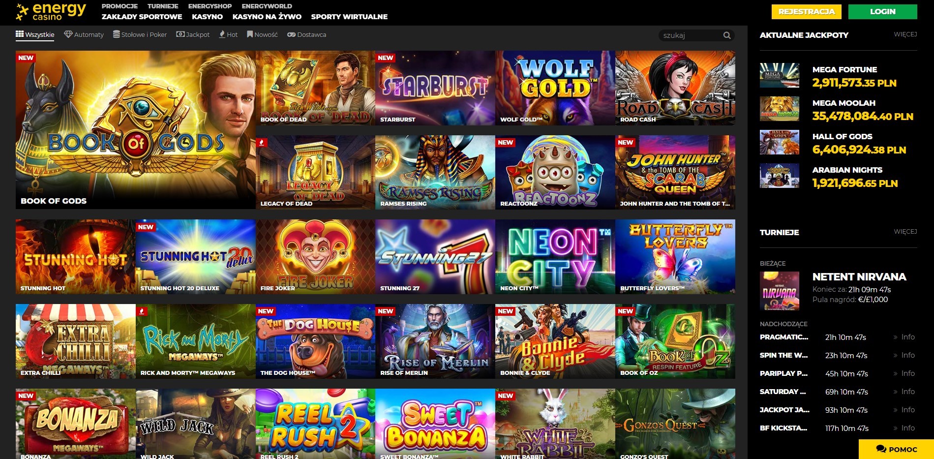 - Niedzielna burza slotów – za złożenie depozytu w wysokości 1250 PLN kasyno wynagrodzi was 300 Energy Spinami!
