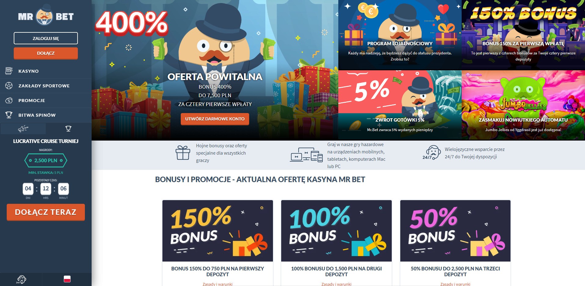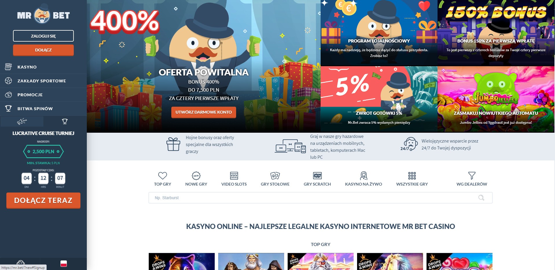 Oferta MrBet bonus na tle konkurencji prezentuje się dobrze. Strona obsługuje mobilnych graczy, posiada aktywne wsparcie, działa w walucie PLN i posiada aktualną licencję. Kasyno w takiej konfiguracji spełni oczekiwania większości graczy, nawet tych którzy uwielbiają rywalizację live z nietypowymi grami w trybie rzeczywistym. Sprawdź osobiście stronę platformy. Kliknij w link i przejdź do oficjalnej witryny MrBet. Sprawdź rejestrację, która zawsze jest darmowa!